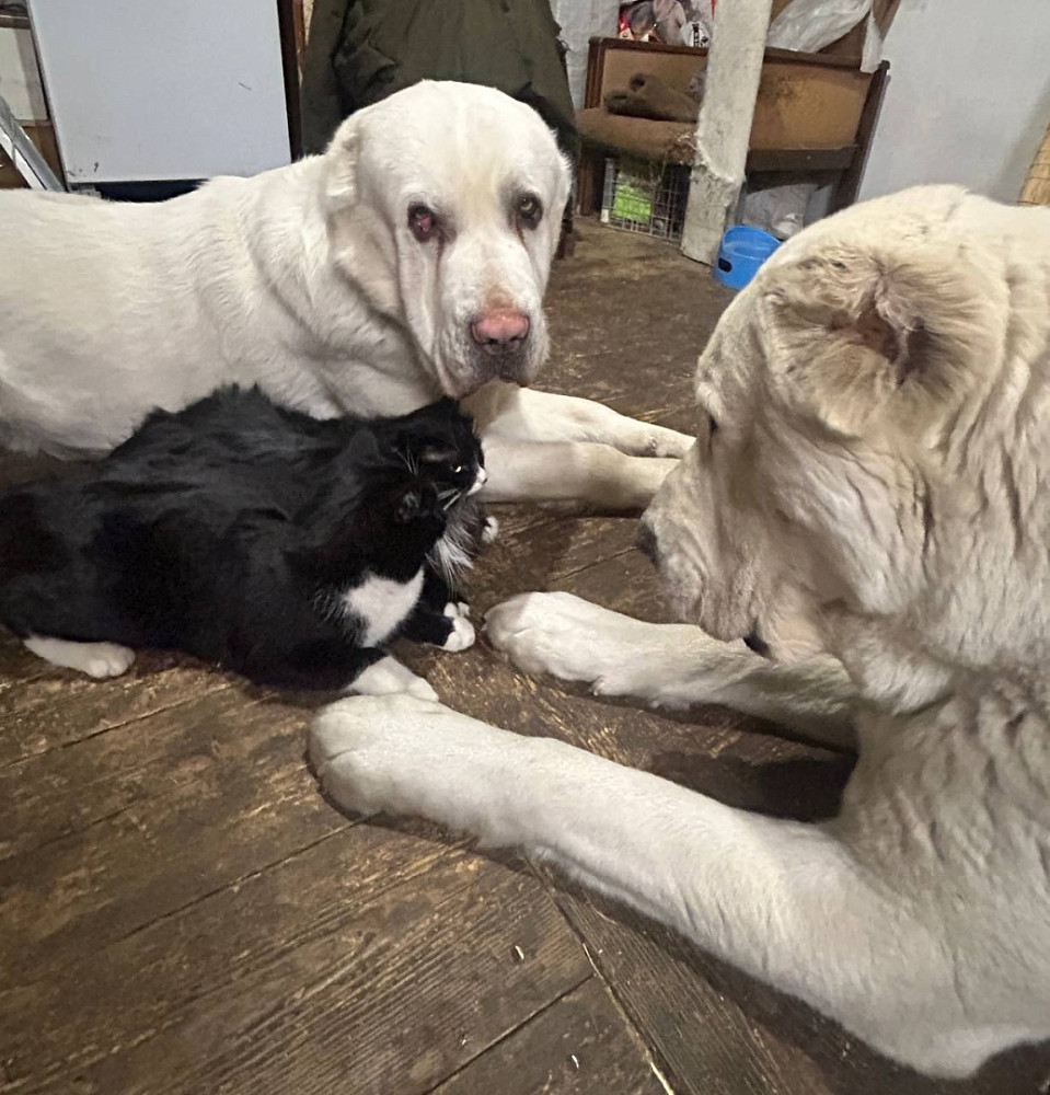 В Улан-Удэ в разгар морозов Алабай приютил бездомную кошку